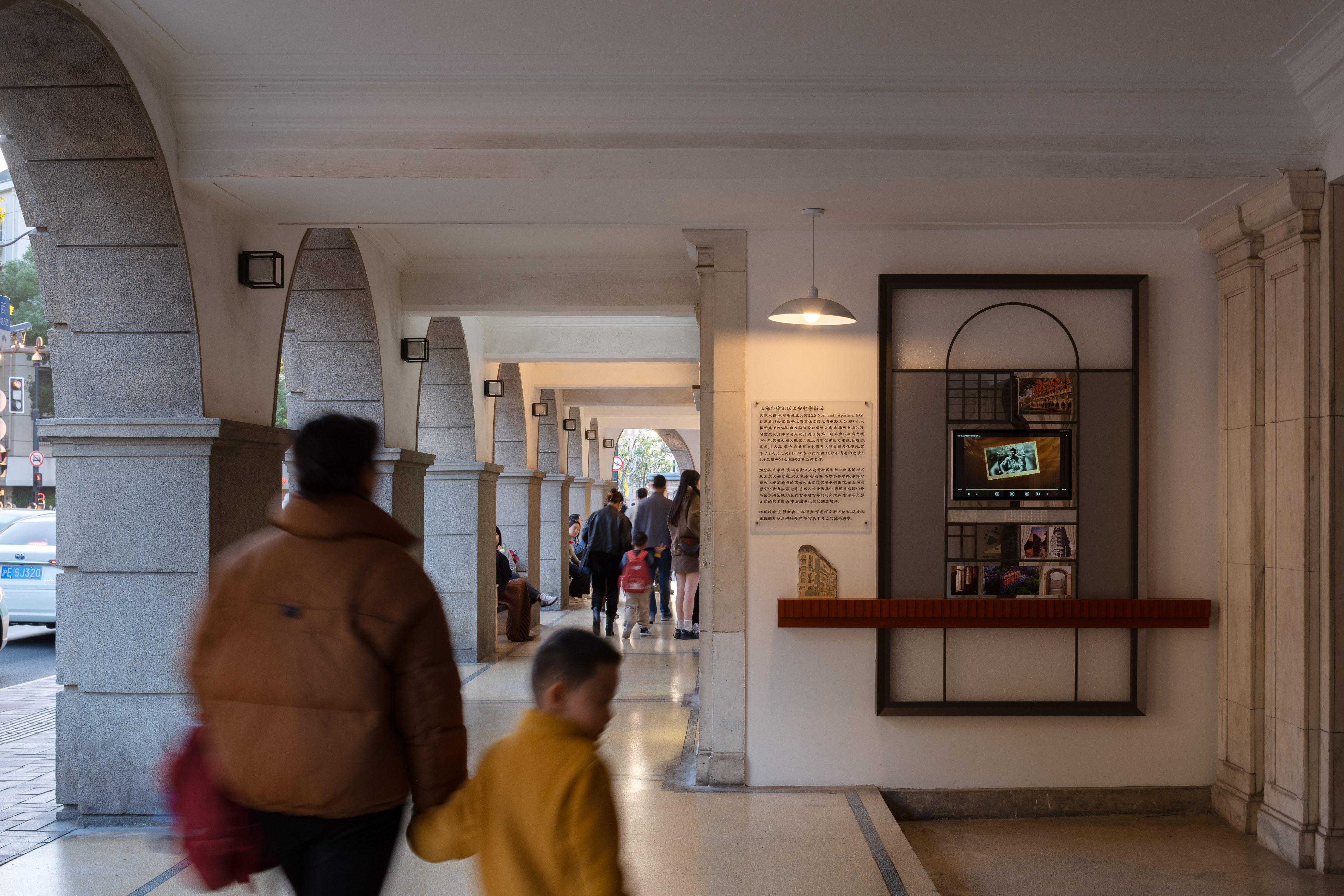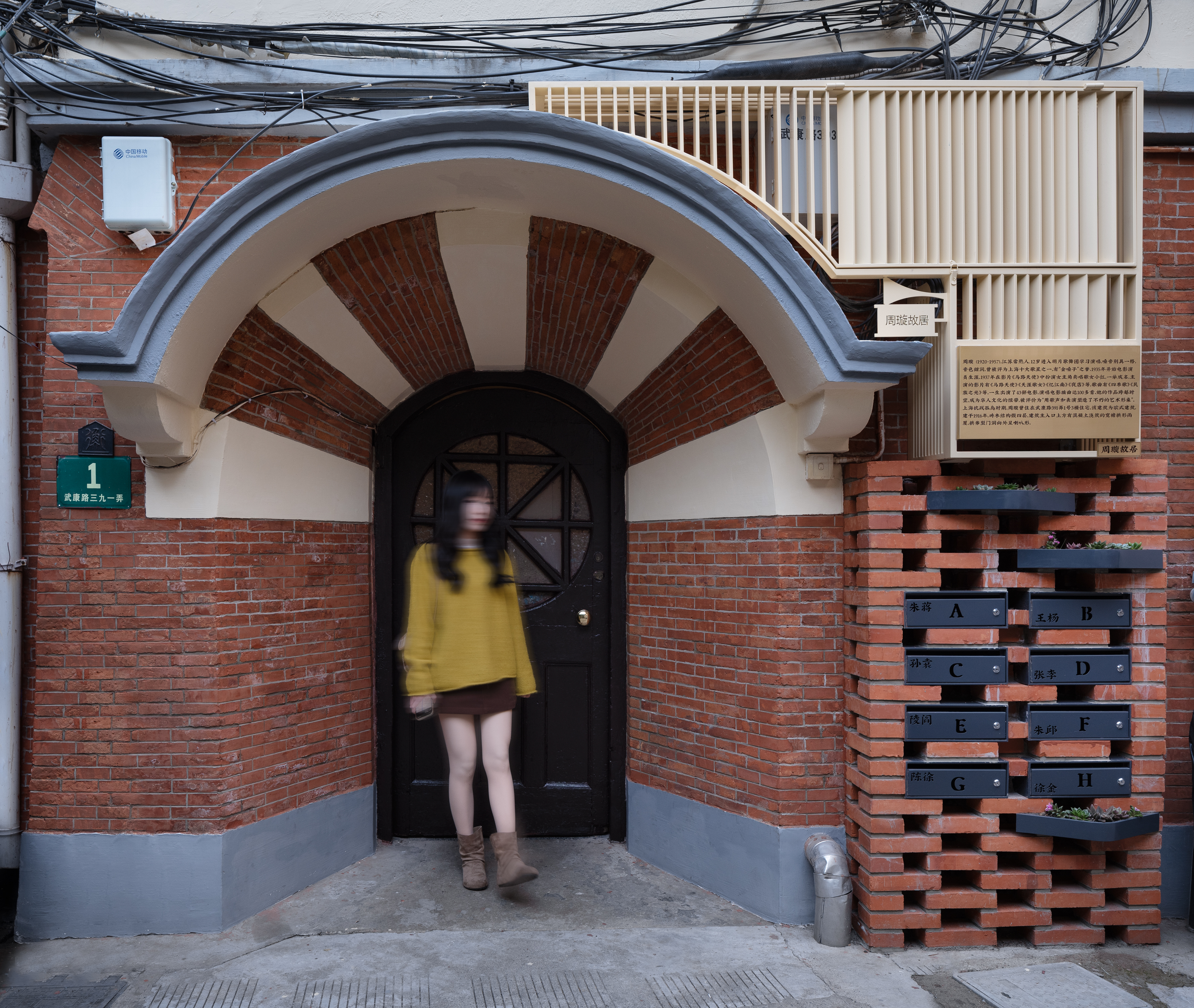 此次改造提升,在入口处以留声机铭牌致敬「金嗓子」传奇,唤回电影艺术的怀旧韵律。同时为延续建筑风貌、优化弄堂空间品质,采用精致的格栅巧妙遮挡设备设施,并延续建筑红砖元素巧妙设置信箱,既保障功能性又提升整体美观度。营造温馨和谐的环境氛围,增强空间的文化感染力和生活气息。