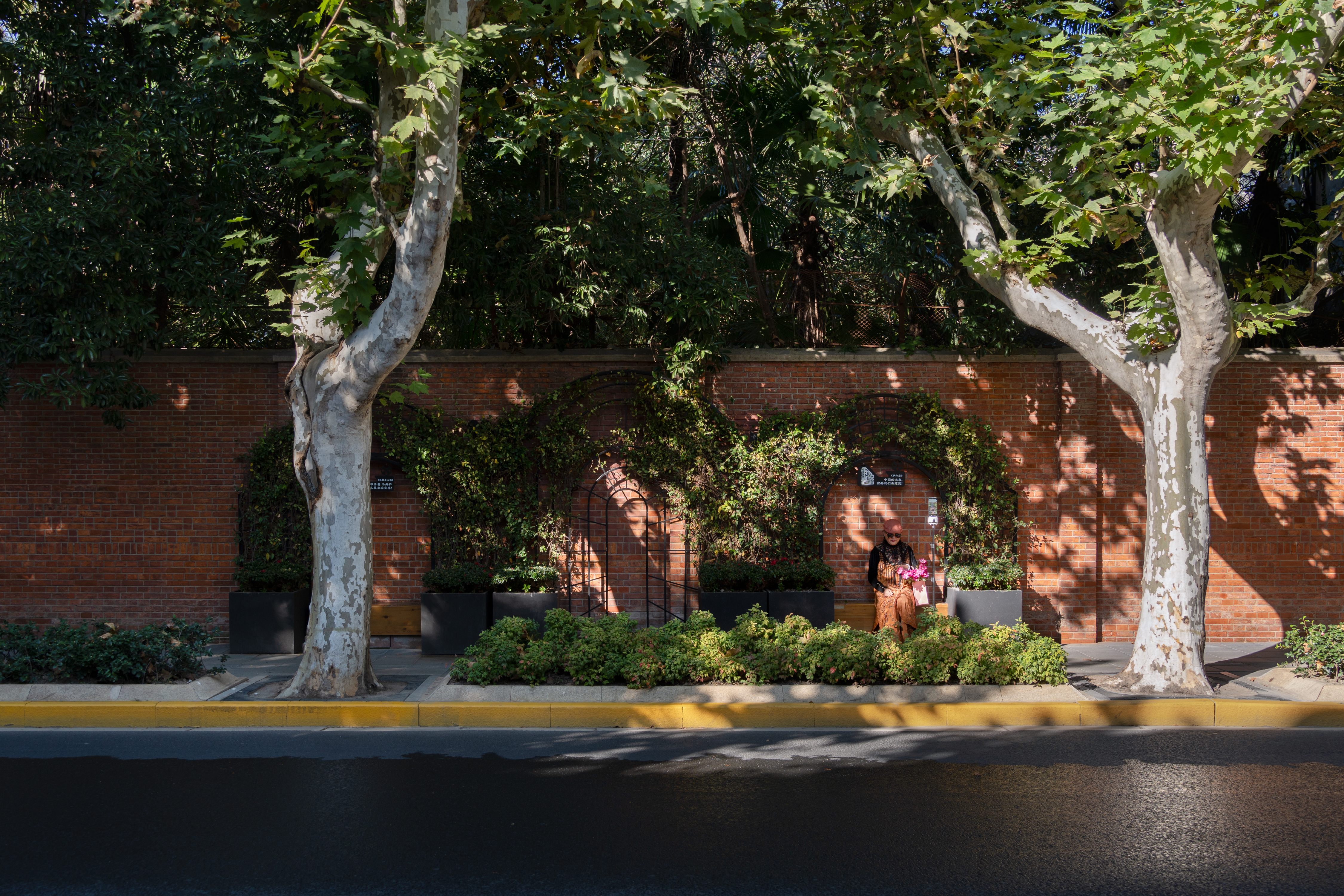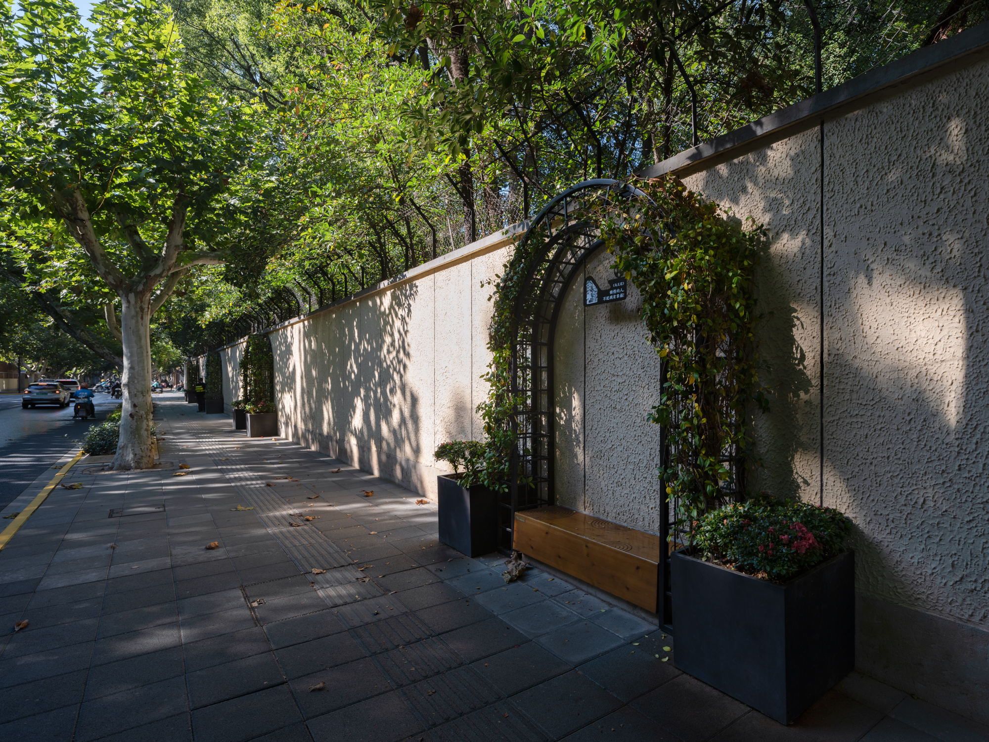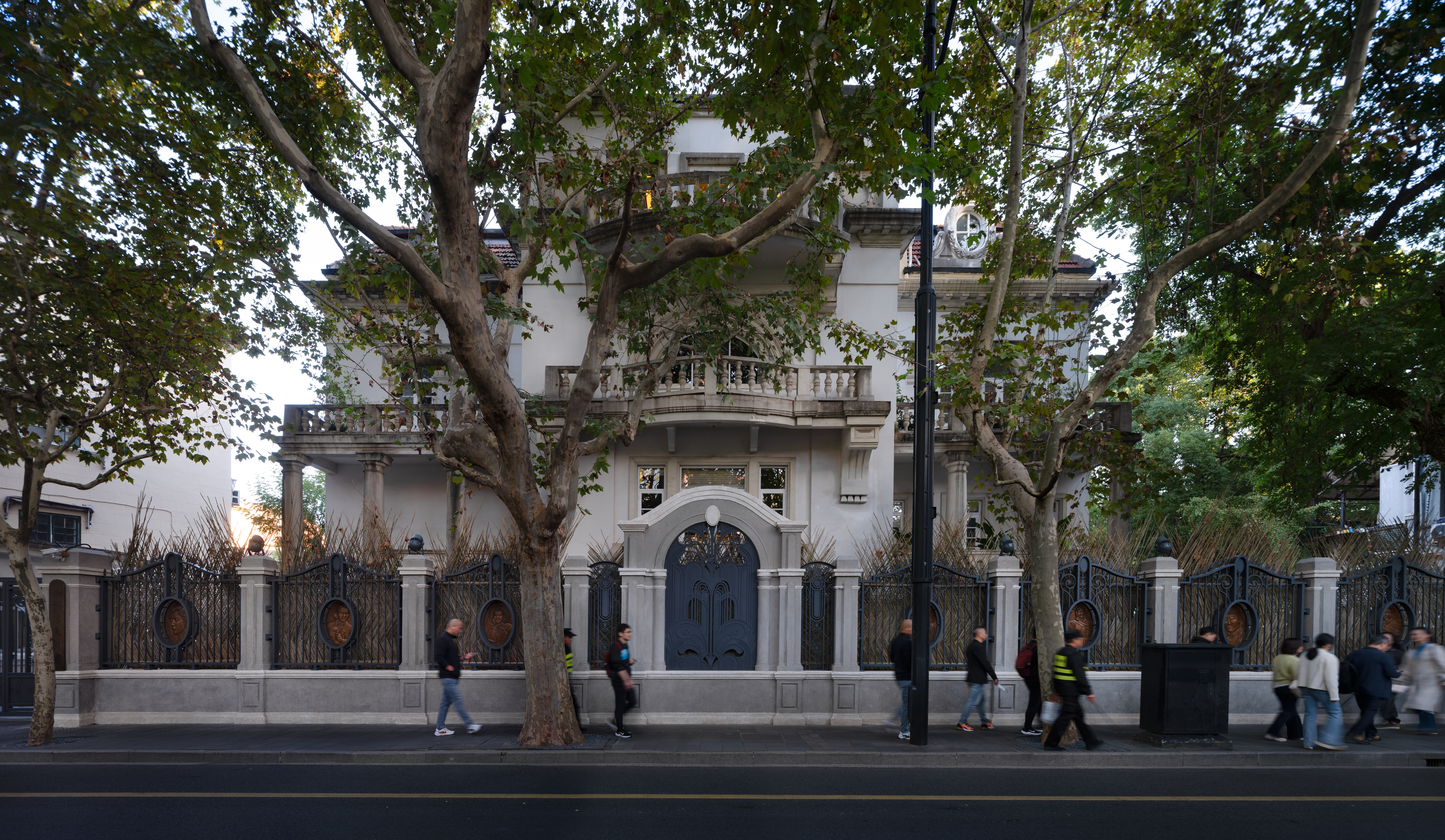 武康路 390 号是一幢具有独特造型与历史价值的花园洋房,曾是意大利驻沪总领事尼隆的官邸,目前,这里已成为由上汽集团的办公场所。此次围墙更新在保留历史风貌的同时,增强开放性 , 形成融合市集与文化体验的轻量化公共场域。
